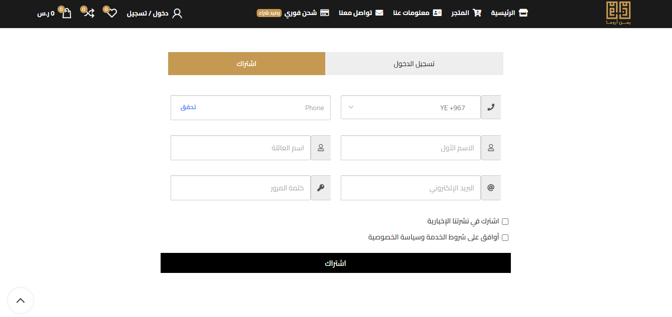 يرجى التواصل بنا على: 74 33 22 74 7 967+، support@yemenaroma.com